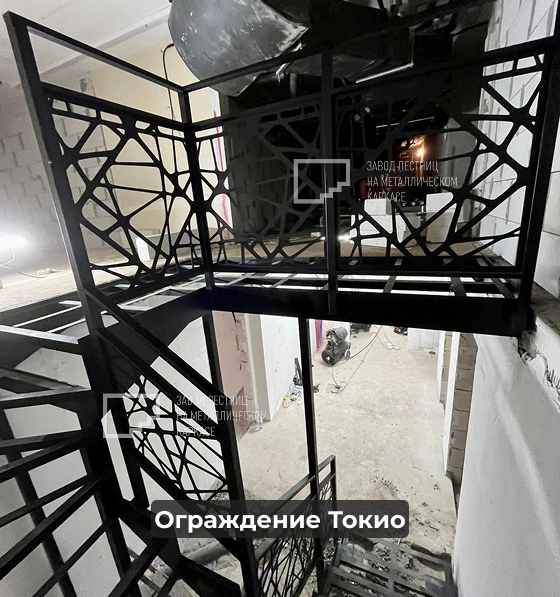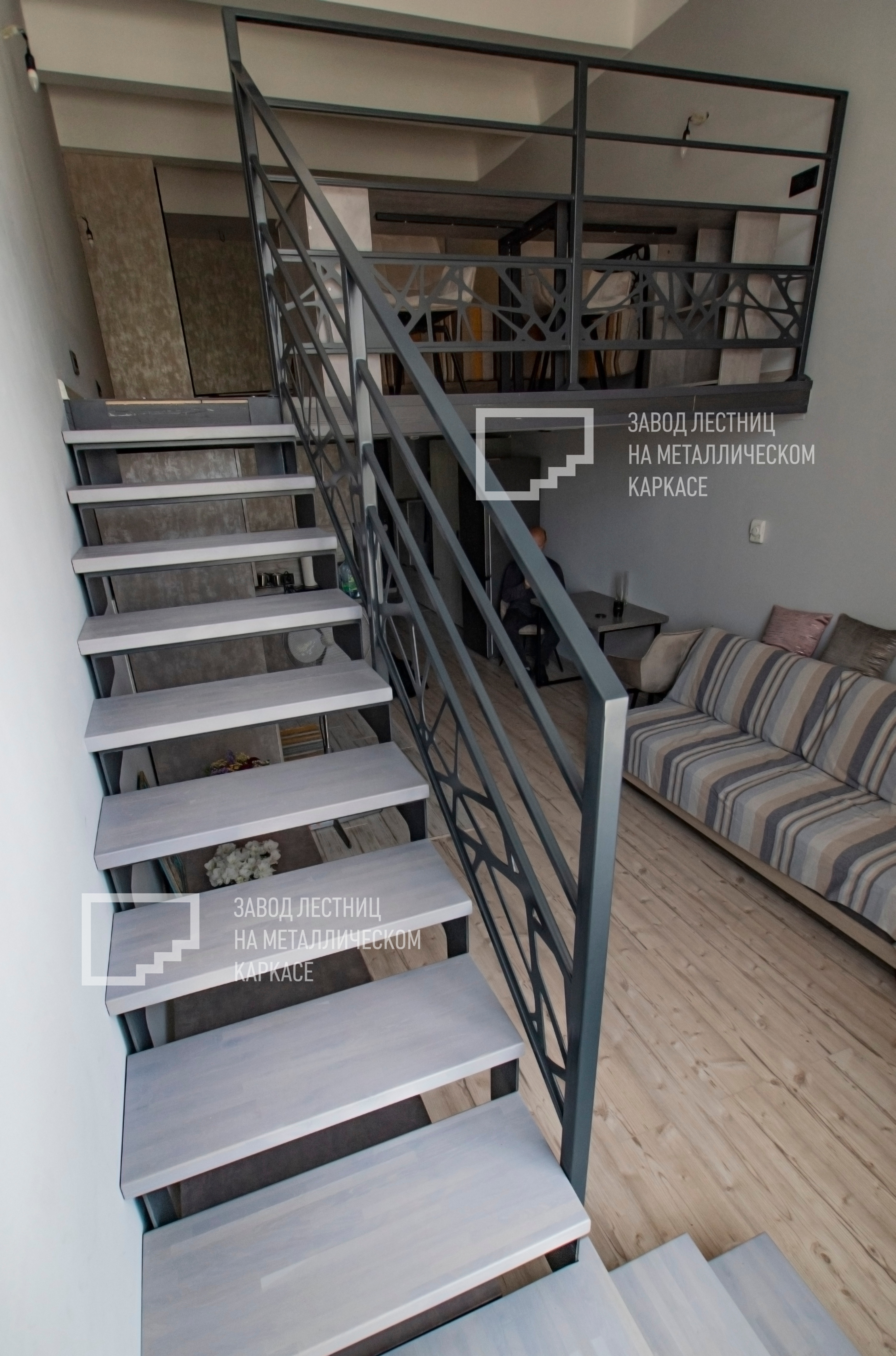 Металлокаркас лестницы и антресольного этажа с дизайнерским ограждением «Токио» 💎