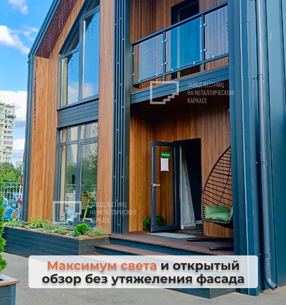 Конструкция смотрится легко и не утяжеляет внешний вид дома.