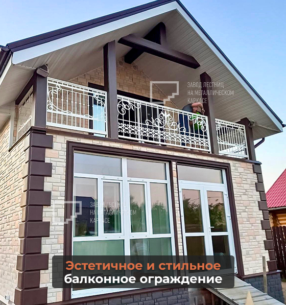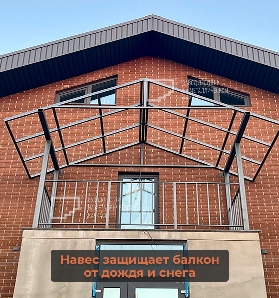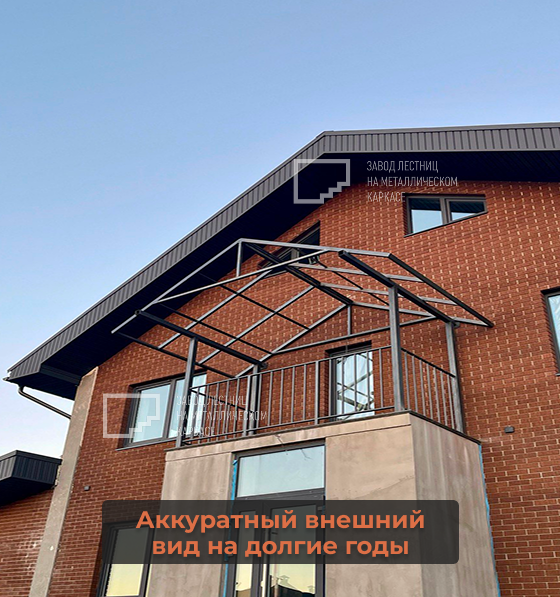Металлическое балконное ограждение с навесом — это практичное и стильное решение для загородного дома. Конструкция подчёркивает архитектуру фасада, делает балкон безопасным и защищённым от осадков, при этом выглядит аккуратно и современно 🏡✨