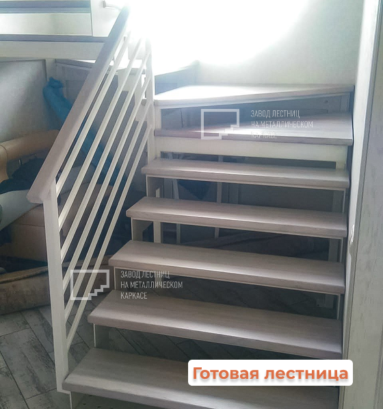 Проектировщики сделали точный расчет размеров и углов поворота: каждая ступень расположена строго по СНИПу, обеспечивая комфортный шаг и устойчивость. Поворотная площадка выдерживает пропорции и сохраняет безопасную ширину прохода.