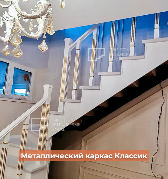Клиент обратился к нам с чётким, но одновременно непростым запросом: необходимо было установить Г-образную лестницу с тремя забежными ступенями на второй этаж в уже частично отремонтированном помещении. Главные пожелания — элегантный внешний вид в духе европейской классики, надёжность конструкции и гармоничное сочетание с богатым интерьером, в котором уже были лепнина, хрустальная люстра и золотые декоративные элементы.
