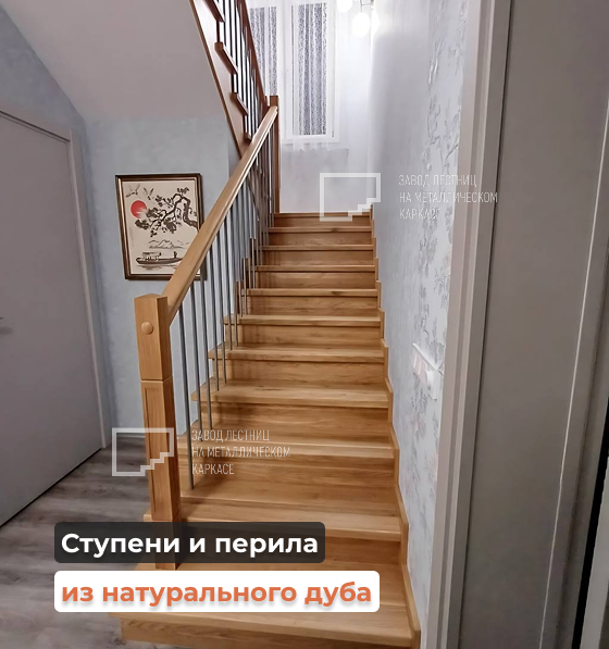 Ступени и перила — из натурального дуба, с мягкими скруглёнными краями 🪵