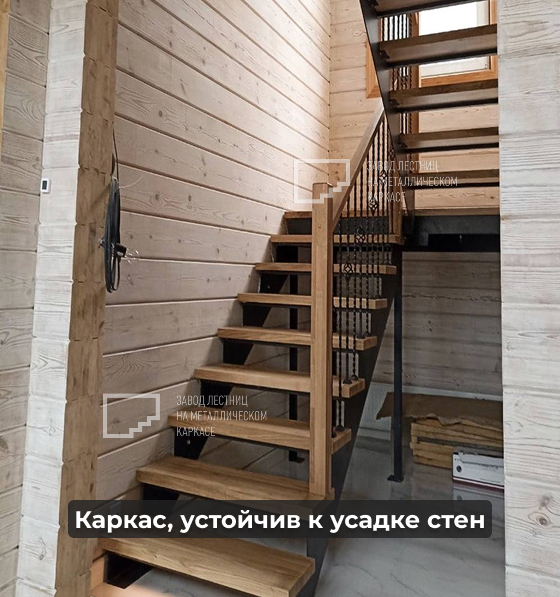 ✔️ Металлокаркас на скользящих креплениях Так как дом из бруса, он подвержен естественной усадке. Мы предусмотрели специальные скользящие крепления и опорные ноги, которые позволяют конструкции «двигаться» вместе с домом, не создавая деформаций или зазоров.