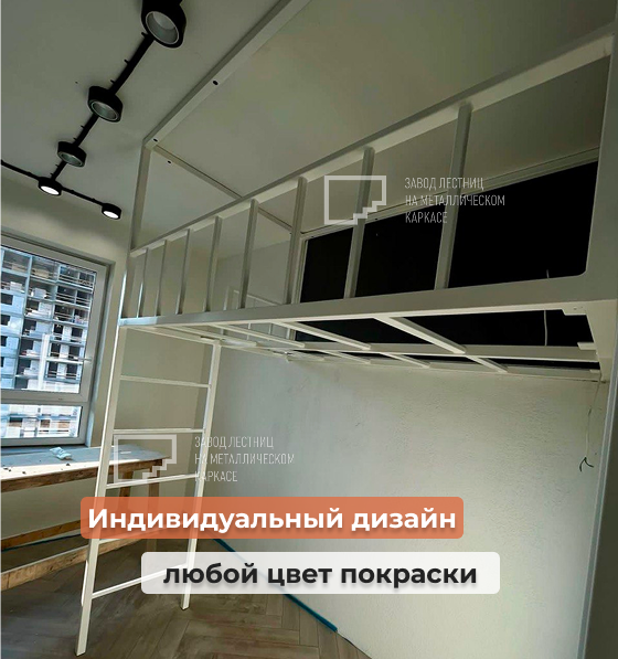 Кровать-чердак из металла лофт в белоснежном цвете 🔥