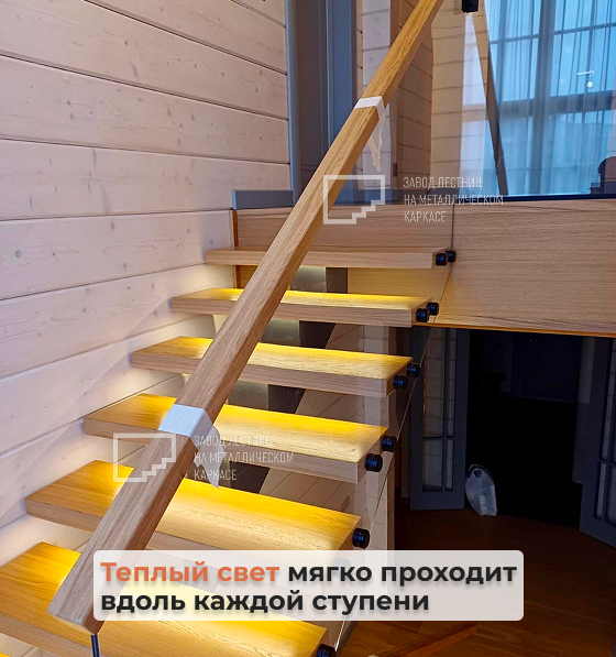 🎥 У нас есть отдельный видеообзор, где вы можете увидеть, как устанавливается освещение и как оно круто подчёркивает дизайн лестницы 💥