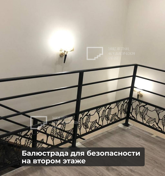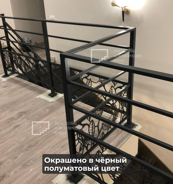 💡 Мы предложили интересное дизайнерское решение: ограждение с лазерной резкой в виде листьев . Такой элемент сразу придаёт лестнице «живой» и тёплый характер — он словно связывает дом с природой, добавляя ощущение уюта.