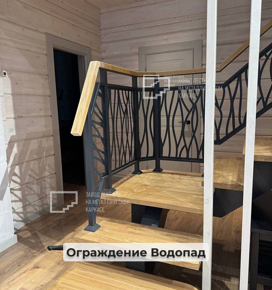 Особое внимание уделили системе ограждений. Вместо стандартных балясин мы установили металлическое ограждение «Водопад», которые создают эффект “парения” и визуально облегчают конструкцию ✨. Для дополнительного комфорта добавили приятные тактильно деревянные поручни.