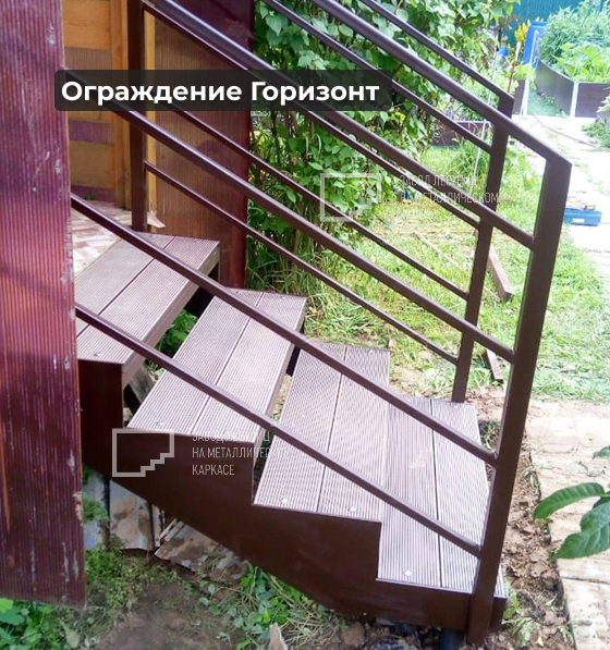 Модель «Горизонт» выполнена из профильной трубы. Заводская покраска в цвет «Шоколад» — это стойкое покрытие, защищающее металл от коррозии и сколов. Лаконичный горизонтальный дизайн подчёркивает современный стиль и делает лестницу визуально «лёгкой».