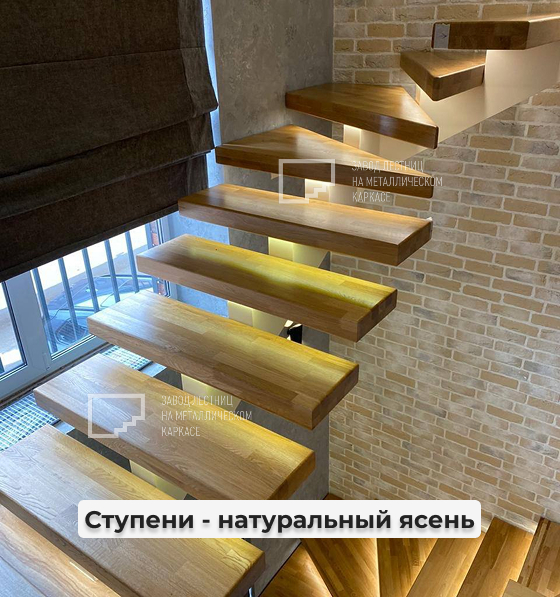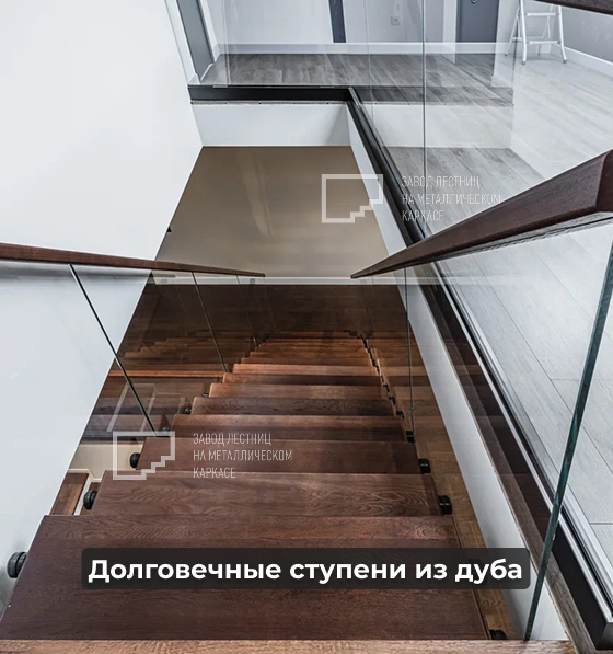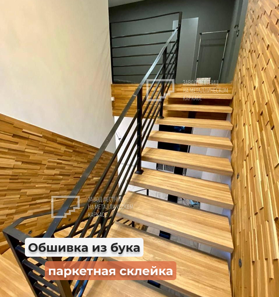 Обшивка дубом лестницы на металлическом монокосоуре
