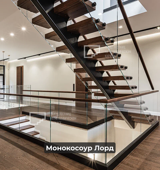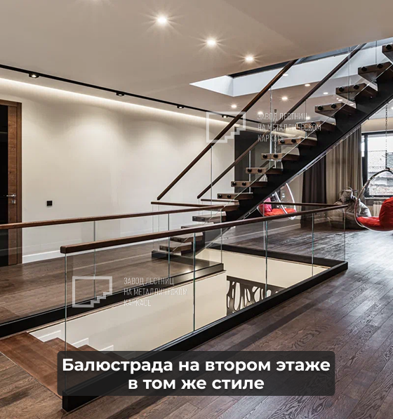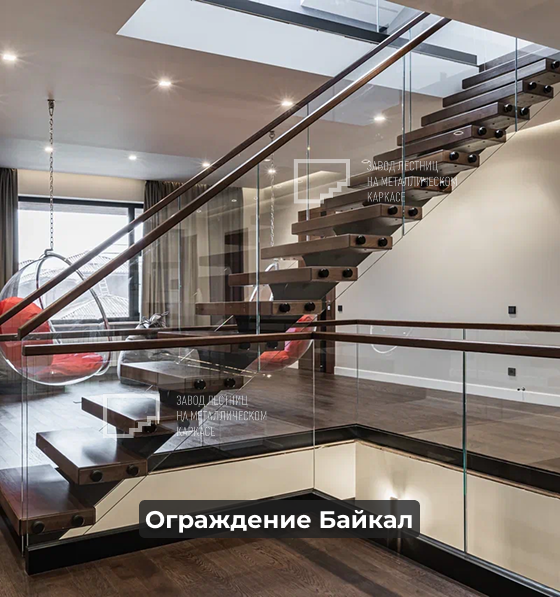 Ограждение – стеклянное, из закаленного безопасного стекла толщиной 10 мм. Оно не только визуально разгружает конструкцию, но и выполняет важную функцию – надежно защищает от падений, не загораживая при этом свет и обзор. Закреплено на скрытых крепежах из нержавеющей стали – они не видны снаружи и не портят внешний вид.