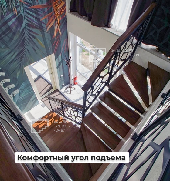 ✔️ Мы разработали лестницу с забежными ступенями, что позволило сохранить угол подъема в пределах нормы и эргономику.