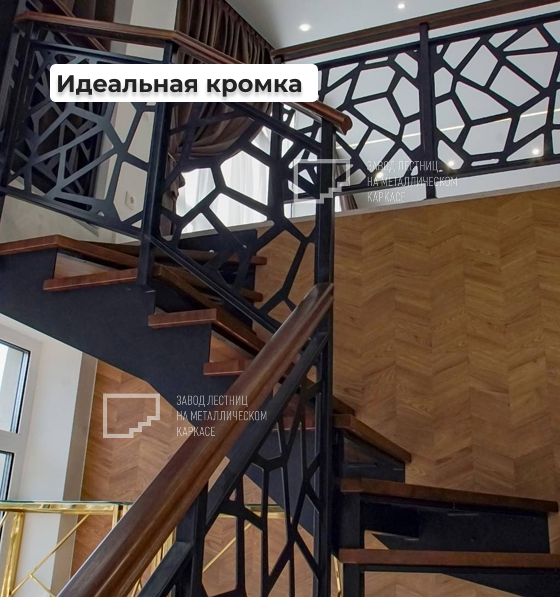 ✔️ Ограждение изготовлено из цельного листа металла толщиной 4 мм, вырезанного на высокоточном немецких лазерном станке. Дизайн ограждения выполнен «Нейрон», что придает лестнице легкость и оригинальность.