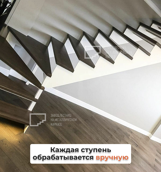 Каждая ступень обрабатывается вручную, чтобы сохранить живую структуру древесины. Мы не скрываем её неровности — мы их подчеркиваем. Это делает лестницу не просто функциональной, а по-настоящему тёплой и уникальной частью дома.