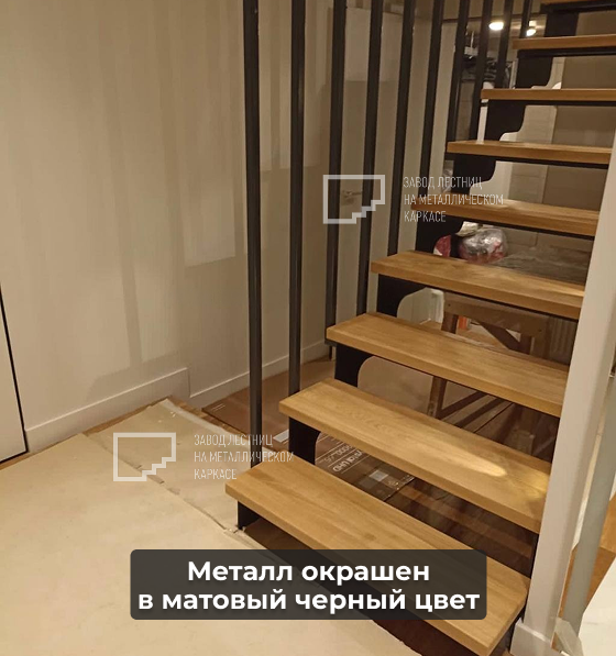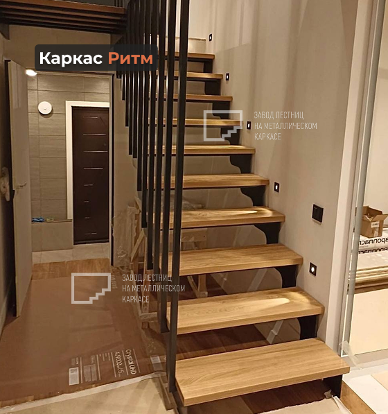 В основе этой лестницы — металлический каркас «Ритм», установленный под ступенями. Такой подход позволяет: