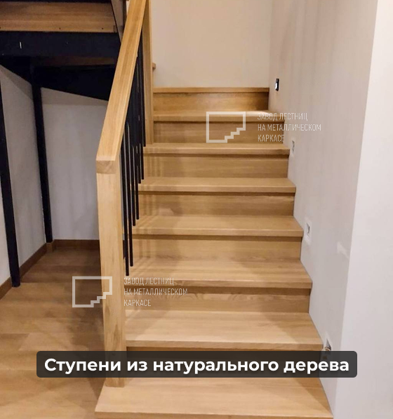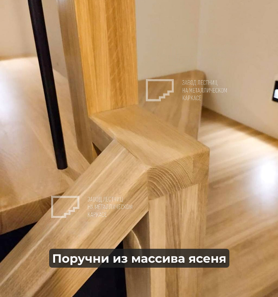 Деревянные элементы — ступени, подступёнки, поручни и обрамление стоек — выполнены из массива. Мы использовали ясень 🪵с тонировкой под натуральный дуб, чтобы создать тёплый, но нейтральный цветовой акцент, идеально вписывающийся в светлый интерьер. Тонкие металлические балясины в чёрном цвете разбавляют структуру и делают её визуально легче — это не только красиво, но и современно.