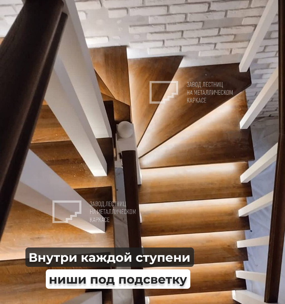 💡 Внутри каждой ступени предусмотрены ниши под светодиодную подсветку