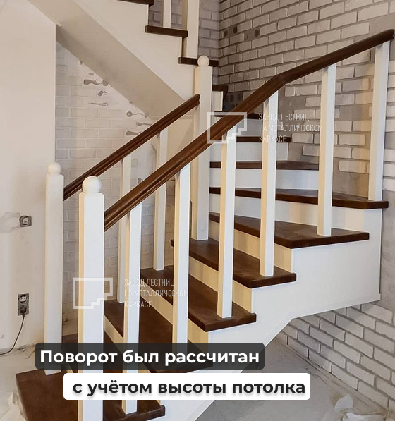 Поворот был рассчитан с учётом высоты потолка и необходимого угла наклона, при этом удалось сохранить комфортный шаг ступеней. Все элементы сошлись с точностью до миллиметра — благодаря детальной проработке на стадии проекта.
