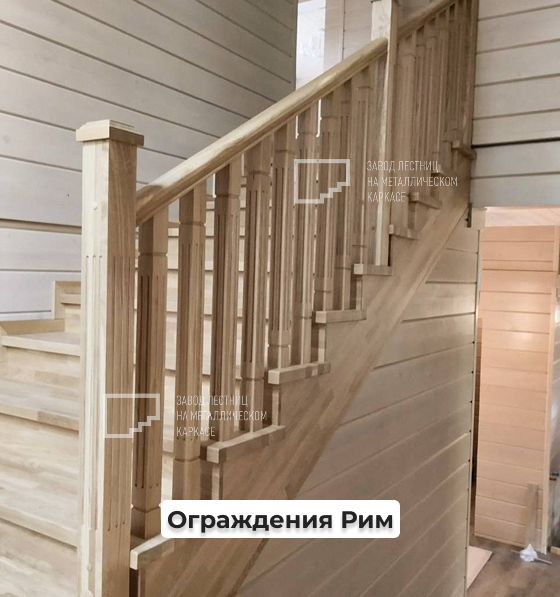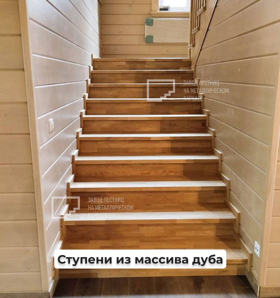 Ступени из массива дуба, тонированные под светлый оттенок, чтобы сохранить природную эстетику интерьера.