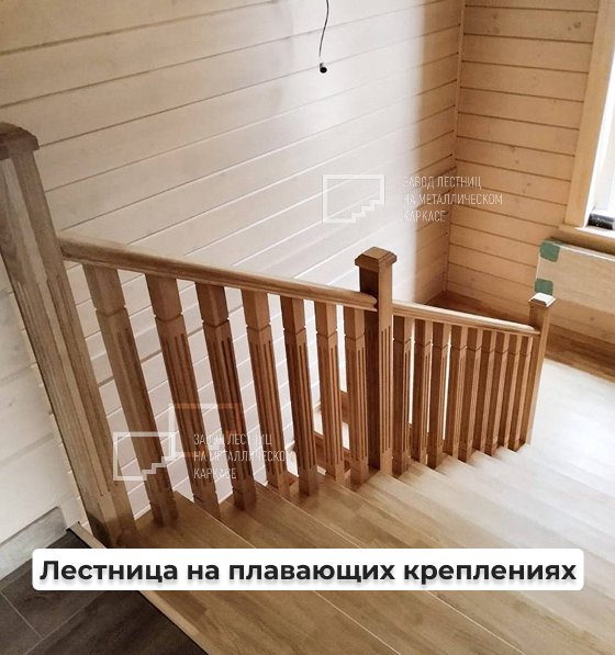 Мы сразу поняли: обычная схема крепления тут не подойдёт. Поэтому применили специальную технологию монтажа с плавающими креплениями, позволяющими лестнице «двигаться» вместе с домом, не создавая лишнего напряжения на конструкцию. Это особенно важно в первые годы жизни деревянного строения.
