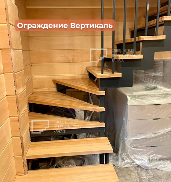 🏠 Неординарное решение для маленького проема: лестница «Авангард» с ограждением «Вертикаль»