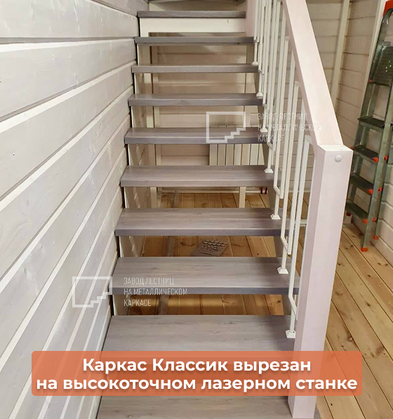 Отсутствие подступенников — усиливает ощущение воздушности. Но при желании возможно добавление — в каталоге представлены варианты для открытых лестниц.