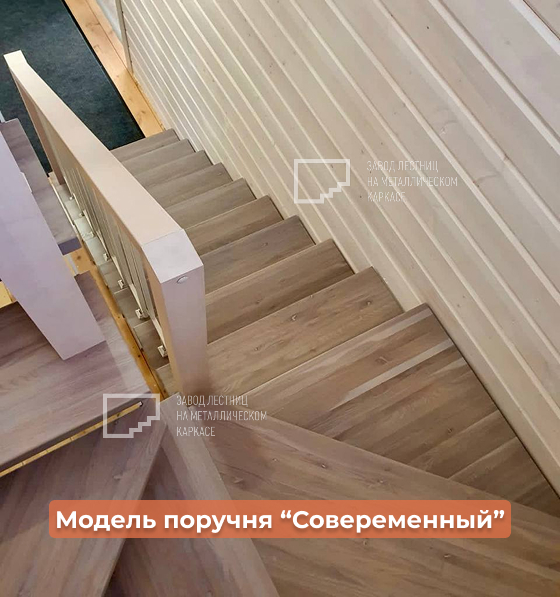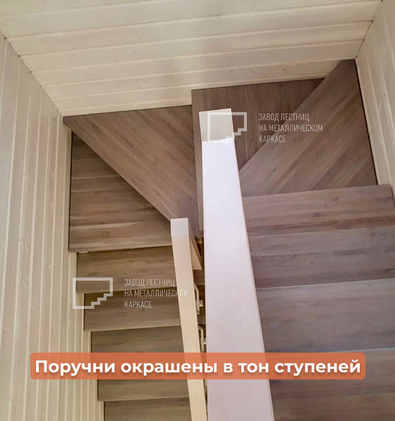 Поручни — также из ясеня, окрашены в тон ступеней, создают цельный стиль.