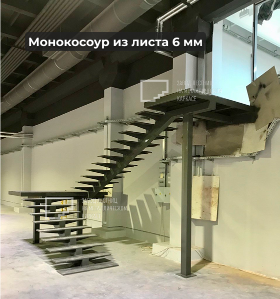Промышленная металлическая лестница с индивидуальным дизайном ограждения