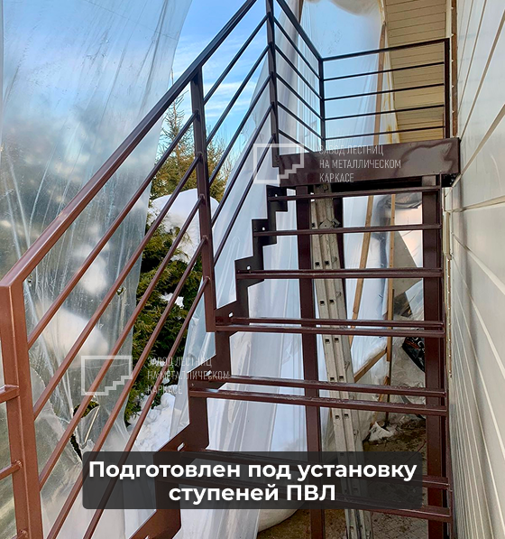Ступени – каркас подготовлен под установку решетчатых ступеней ПВЛ (просечно-вытяжной лист). Это оптимальное решение для промышленных лестниц: ступени не задерживают воду, грязь и снег, исключают скольжение и обеспечивают безопасность даже в непогоду.
