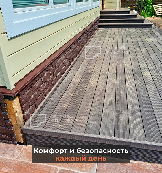 👉 Терраса сохраняет аккуратный внешний вид на долгие годы и остаётся комфортной в любое время года.