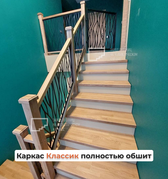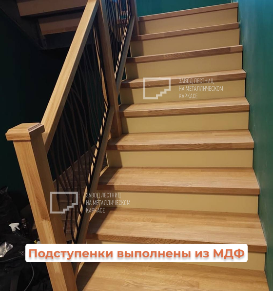 🌿 В основе конструкции — ступени из дуба, прочные, надёжные и с благородной текстурой. Подступенки выполнены из МДФ, окрашены в светлый тон, чтобы визуально облегчить конструкцию и создать контраст с древесиной. Все опорные элементы — поручни, подбалясенники и столбы с навершием — также из дуба, и прекрасно сочетаются со ступенями, создавая ощущение цельности.