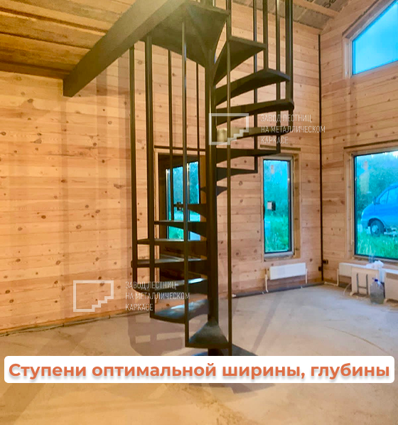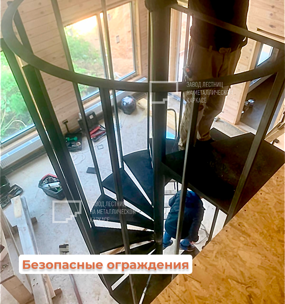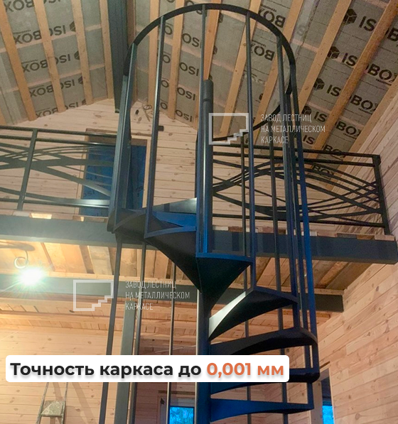 💼 Каркас лестницы изготовлен из прочного металла с точной геометрией. Винтовая форма позволяет сэкономить ценное пространство на первом этаже и при этом обеспечивает удобный подъём на второй уровень.