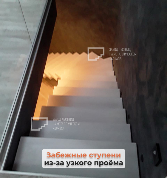 ❤️ Забежные ступени: Из-за узкого проёма было решено применить забежные ступени — это позволило сохранить эргономику лестницы и при этом не уменьшать шаг подъёма. Все параметры (высота, ширина, угол) были точно просчитаны на этапе проектирования.