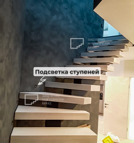 💡Подсветка: По желанию клиента была интегрирована светодиодная подсветка сбоку каждой ступени. Это не только декоративный элемент, но и практичное решение для безопасного передвижения в тёмное время суток. Для электрика заказчика мы подготовили отдельный проект разводки электропитания, чтобы установка прошла без проблем.