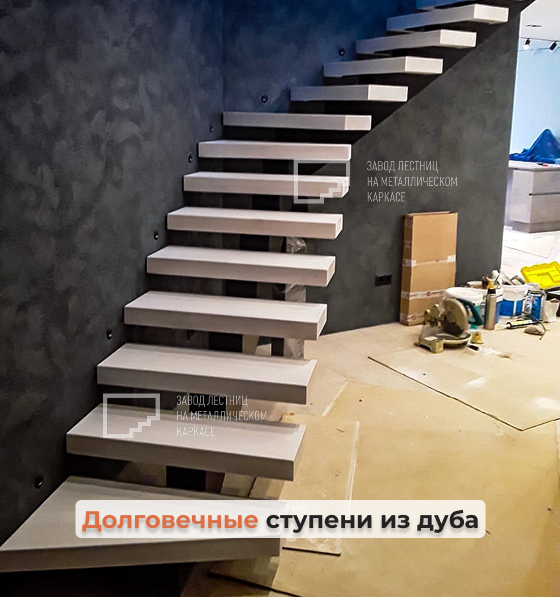 Дубовые ступени — прочные, устойчивые к износу, с тёплым естественным оттенком.